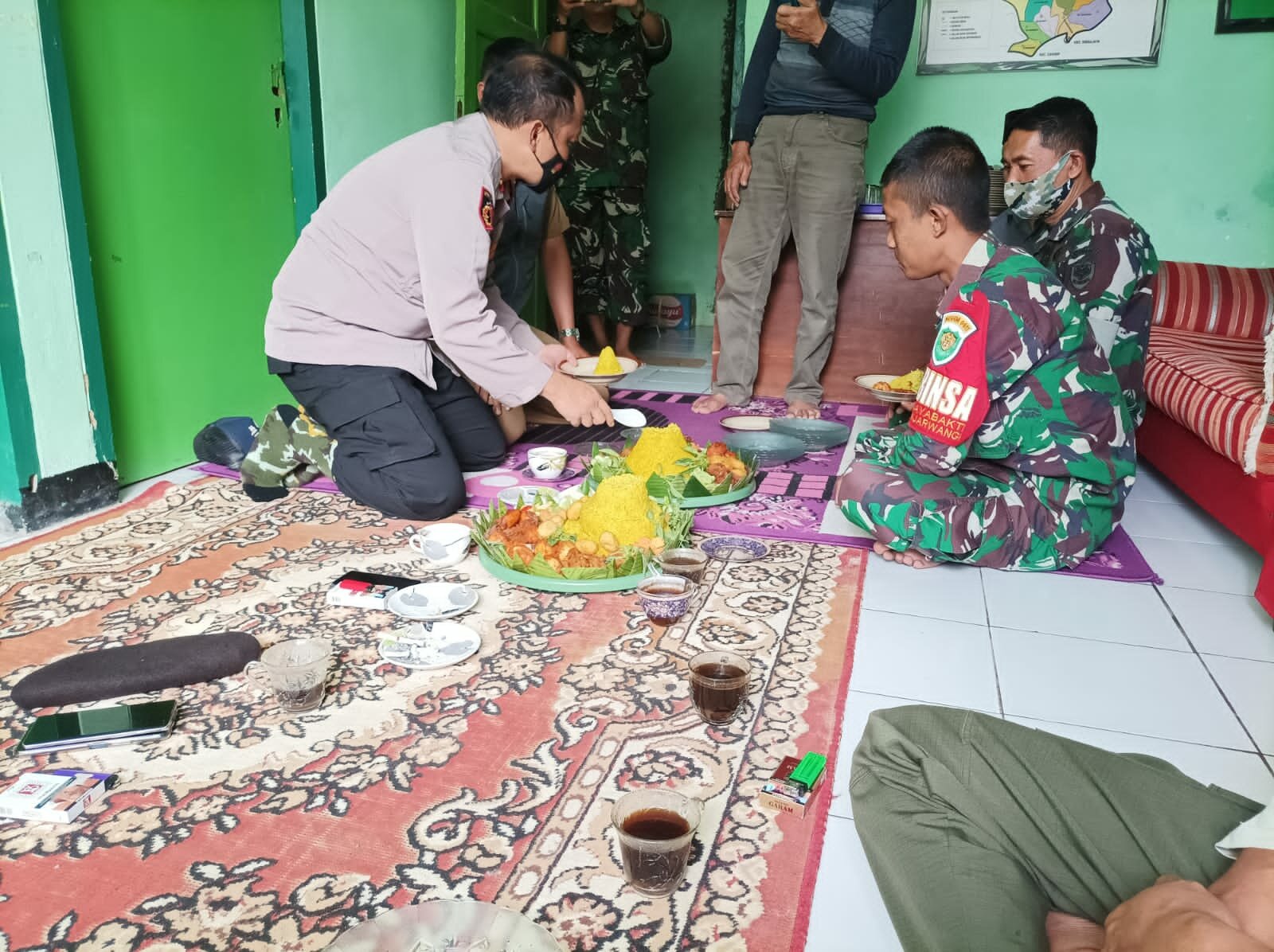 Dalam kunjungannya, rombongan kapolsek dan Camat Banjarwangi membawa nasi tumpeng. Nasi tumpeng tersebut kapolsek kepada Danposramil Banjarwangi. Kedua pejabat secara bersamaan mengucapkan selamat HUT ke-76 TNI.
