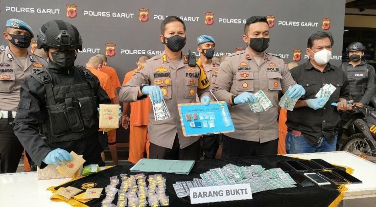 Kapolres Garut AKBP Wirdhanto Hadicaksono mengatakan, ” Team Sancang dan Satres Narkoba Polres Garut telah berhasil mengungkap kasus penyalahgunaan Narkotika dan obat berbahaya dalam kurun waktu 2 (dua) Minggu terakhir sejumlah 8 kasus dengan 16 tersangka.