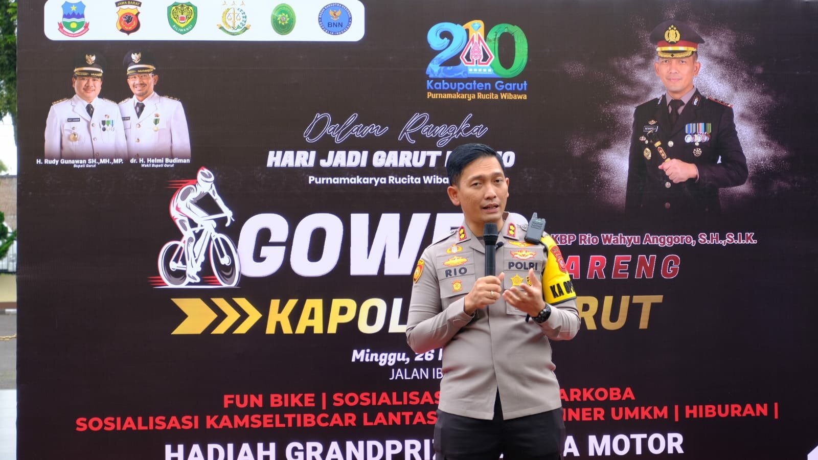 Sementara, Kapolres Garut, AKBP Rio Wahyu Anggoro menyampaikan, kegiatan Gowes Bareng Kapolres ini berawal pihaknya yang telah membangun pemikiran bersama timnya pasca Covid-19 yang berdampak terhadap segala hal, baik itu bidang sosial, budaya, pendidikan, kesehatan, dan lain sebagainya.