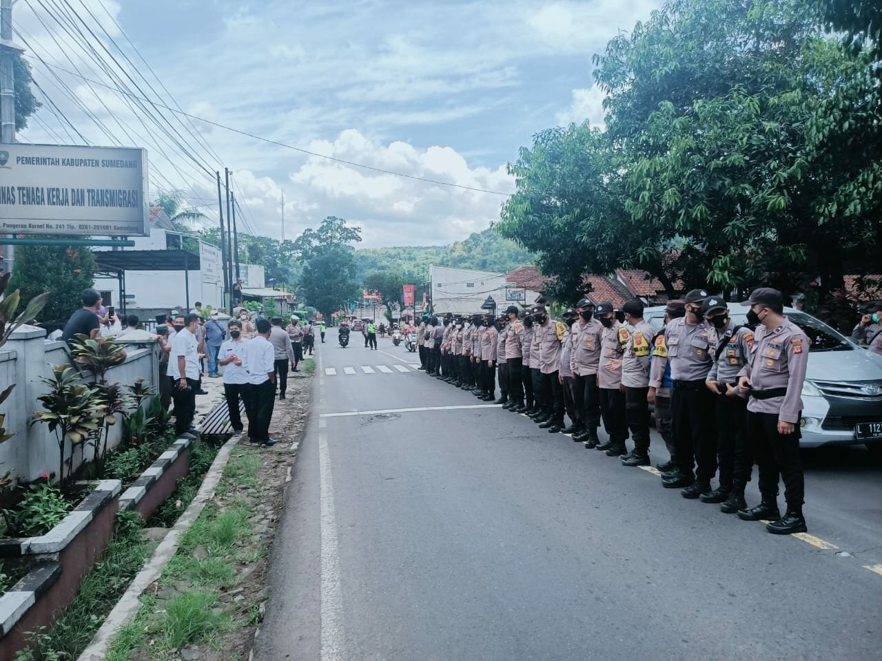 TINTAJABAR.COM, SUMEDANG – Ka[polres Akbp. Eko Prasetyo Robbyanto dalam rangka pengamanan jalannya unjuk rasa terjun langsung ke lapangan melakukan pengawalan terhadap buruh yang melakukan ujuk rasa. Kamis ( 3/11/21 ).