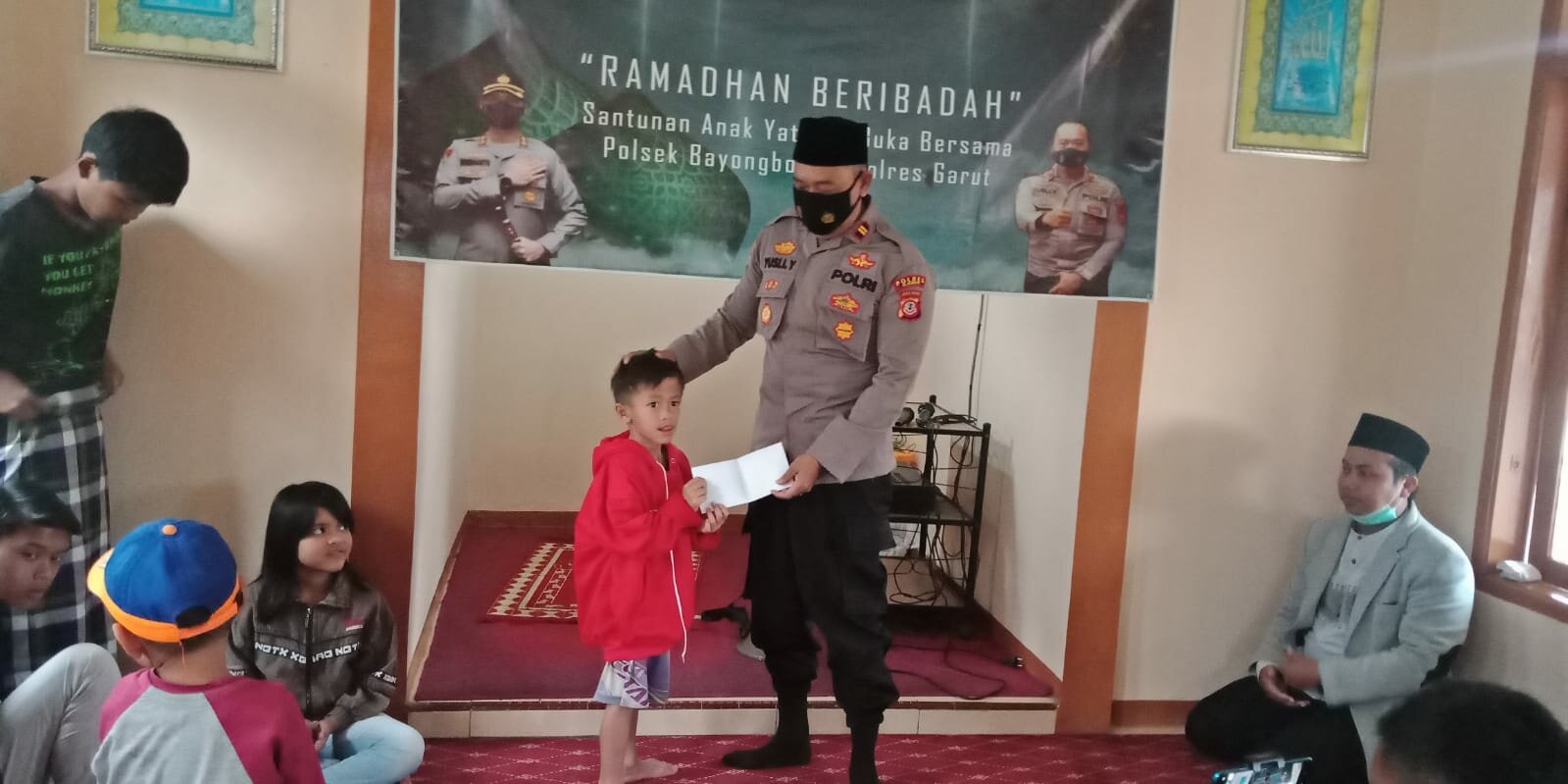 TINTAJABAR.COM, GARUT – Berbagi di bulan suci Ramadhan adalah salah satu bentuk menyempurnakan ibadah di bulan suci Rahmadhan yang penuh berkah Bertempat di mako Polsek Bayongbong melaksanakan kegiatan pemberian santunan ke anak yatim dengan jumlah 21 anak dengan berupa uang tunai dan menu berbuka puasa.