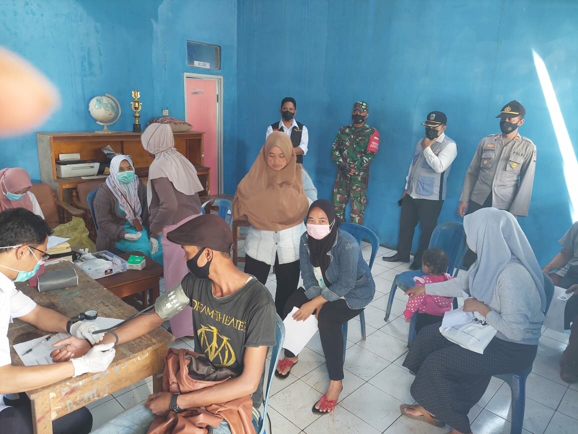 TINTAJABAR.COM, GARUT – Kapolsek Singajaya Polres Garut Polda Jabar AKP Sahono bersama Camat dan Babinsa monitoring pelaksanaan Gebyar Vaksinasi Presisi TNI-POLRI di Desa Girimukti, Kecamatan Singajaya, Kabupaten Garut, Jawa Barat. Rabu (3/11/2021).
