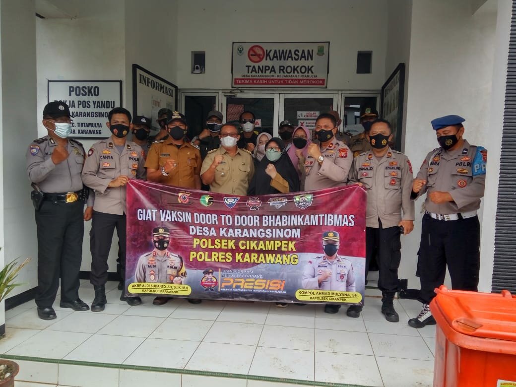Kegiatan Vaksinasi door to door Bhabinkamtibmas di desa Karangsinom yang digelar dari pagi hingga jelang tengah dan ditungguin langsung oleh Kapolsek Cikampek ini berjalan dengan lancar dan kondusif.