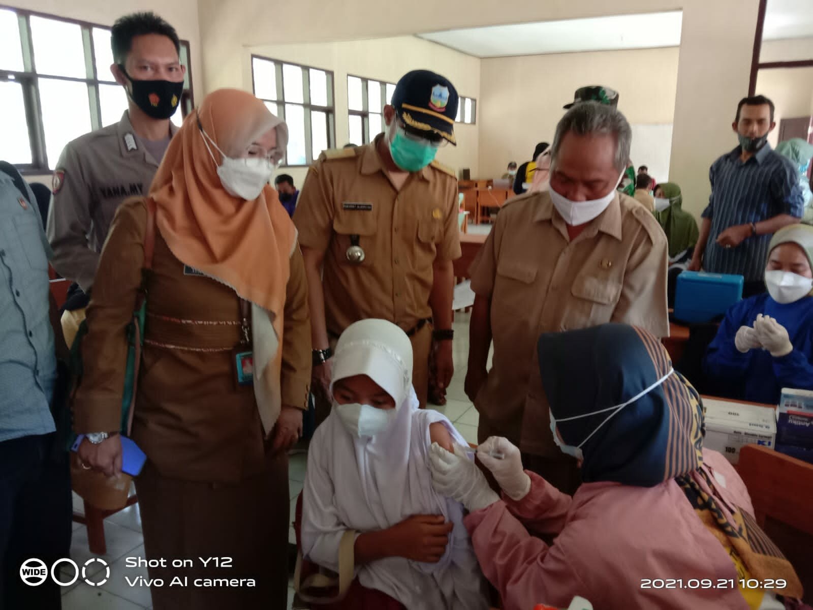 Target vaksinasi yang diadakan sebanyak 750 orang dan yang hadir 715 orang, yang menerima 633 orang dengan Dosis 1 sebanyak 597 orang untuk Dosis 2 sebanyak 36 orang sedangkan 82 orang ditanguhkan dikarenakan sakit.