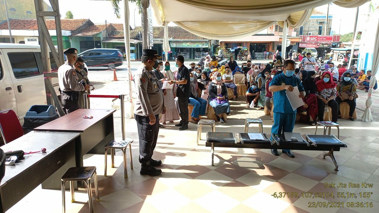 TINTAJABAR.COM, KARAWANG – Kapolsek Jatisari polres Karawang polda Jabar monitor Kompol H. MARSONO, S.Pd, MM terjun langsung melaksanakan monitoring pelaksanaan pelayanan vaksinasi dosis 2 di RS Puriasih Jatisari. Kamis tgl 23 September 2021, mulai pkl 08.00 wib s/d selesai.