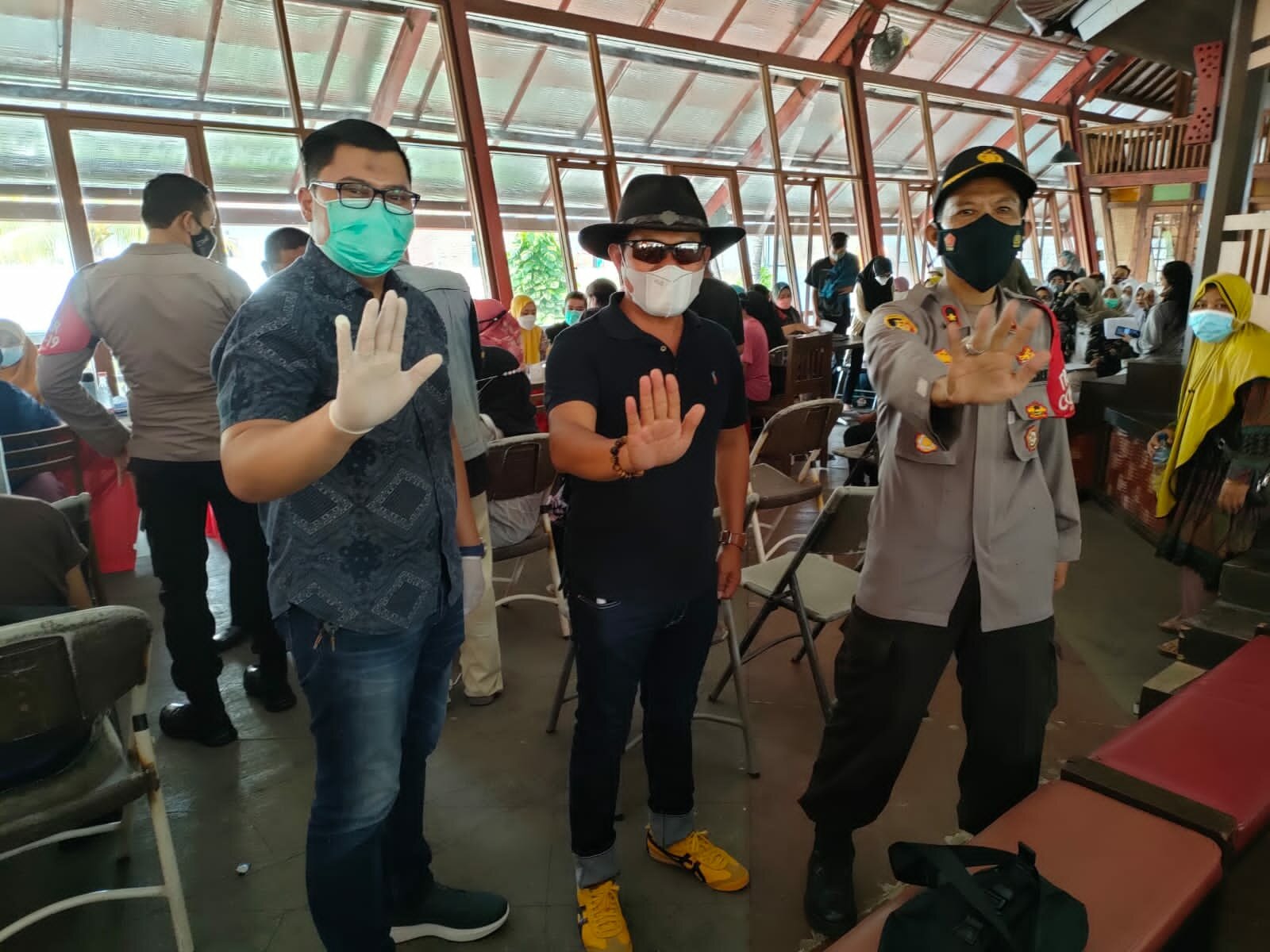 TINTAJABAR.COM, GARUT – Polsek Kadungora Polres Garut Polda Jabar berikan rasa aman dan nyaman dalam Kegiatan Vaksinasi Massal yang diselenggarakan oleh Yayasan Sarupa dan Asep Stroberry di RM Asep Stroberry Kadungora Garut. Rabu (21/10/2021).