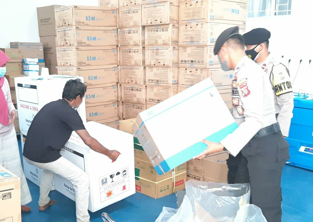 TINTAJABAR.COM, KARAWANG – Kegiatan Pengamanan Kedatangan Vaksin Covid 19 ASTRA ZENECA dari PT. POS LOG Bandung ke Kantor Dinas Kesehatan Kab. Karawang.