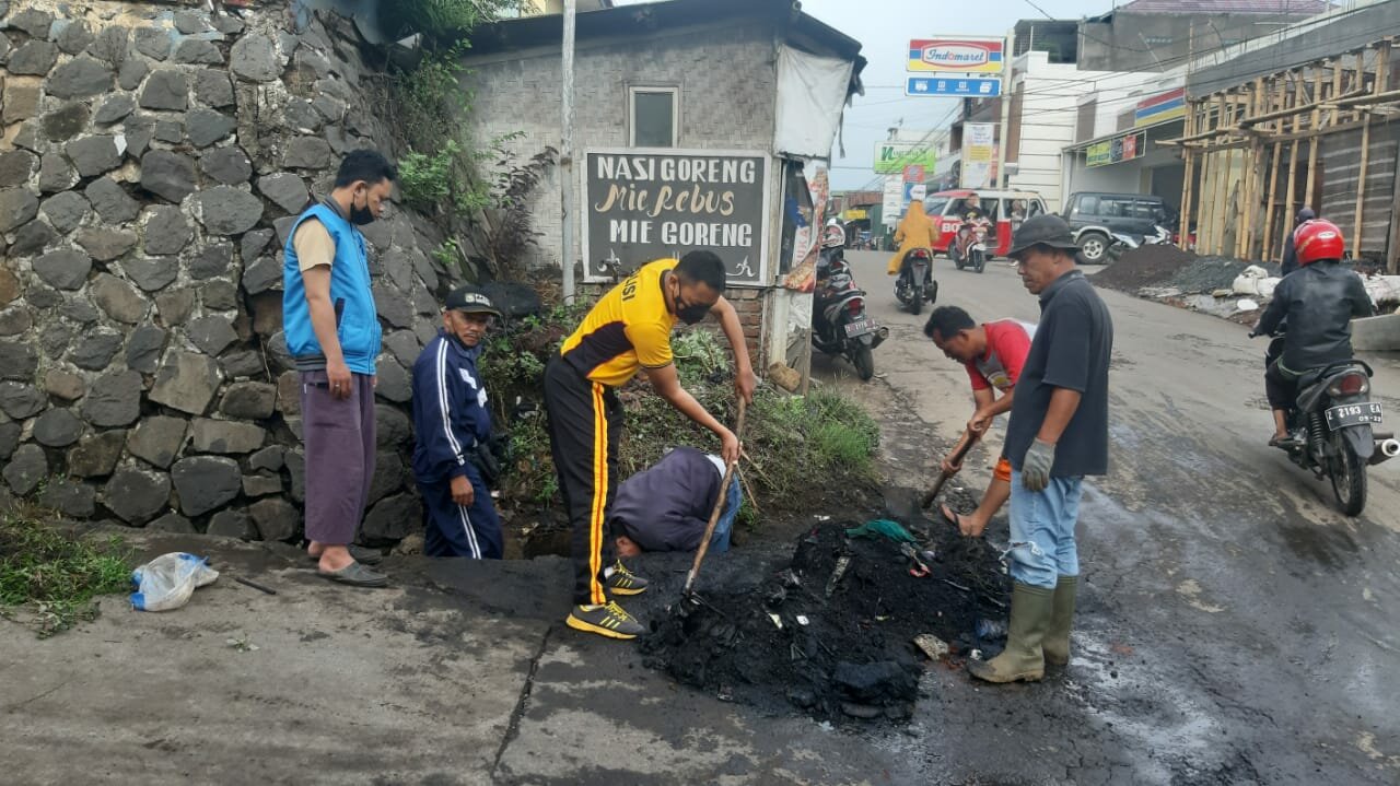TINTAJABAR.COM, GARUT – Kapolsek Sukawening Polres Garut IPTU Agus Kustanto, SH Bersama dengan Forkopimcam dan Anggota Serta Warga Masyarakat Desa Sukamukti, Sukawening dan Pasanggrahan Kecamatan Sukawening kabupaten Garut Laksanakan kerja bakti membersihkan Drainase saluran air yang melintas jalur desa tersebut Jumat (05/11/2021)