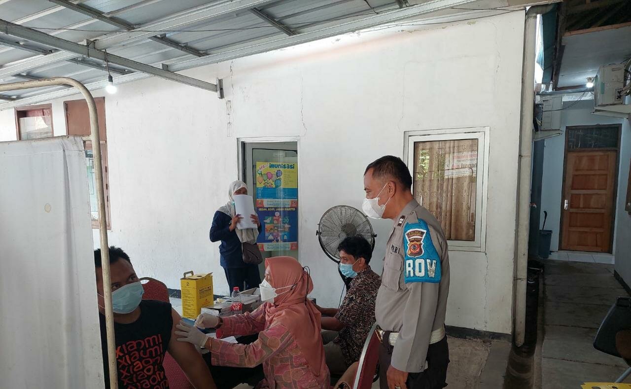 TINTAJABAR.COM, KARAWANG – Kapolsek Tempuran Polres Karawang AKP Rigel Suhakso didampingi kanit Provost melaksanakan monitoring kegiatan vaksinasi masal. Kamis, 04 November 2021