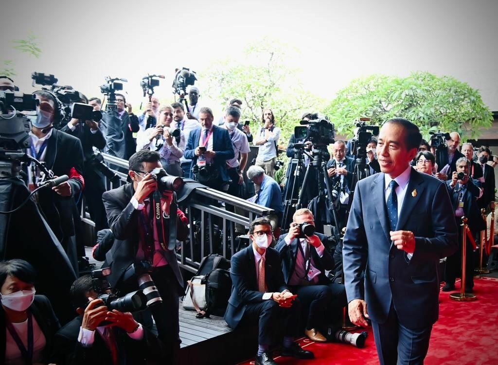 TINTAJABAR.COM, BALI – Presiden Joko Widodo secara resmi membuka puncak Konferensi Tingkat Tinggi (KTT) G20 di Hotel Apurva Kempinski, Kabupaten Badung, Provinsi Bali, pada Selasa, 15 November 2022. Dalam pidato pembukanya, Presiden Jokowi menekankan bahwa G20 harus berhasil menghasilkan sesuatu yang konkret bagi dunia.