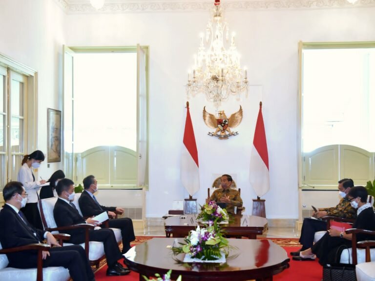 TINTAJABAR.COM, JAKARTA – Presiden RI Joko Widodo (Jokowi) menerima kunjungan Menteri Luar Negeri (Menlu) Republik Rakyat Tiongkok (RRT) Wang Yi beserta delegasi di Istana Merdeka, Jakarta, pada Senin (11/07/2022). Menteri Luar Negeri Retno Marsudi yang turut mendampingi Presiden Jokowi dalam pertemuan tersebut mengatakan bahwa RRT mengapresiasi pemerintah Indonesia dalam mengupayakan resolusi damai terhadap situasi yang terjadi di Ukraina.