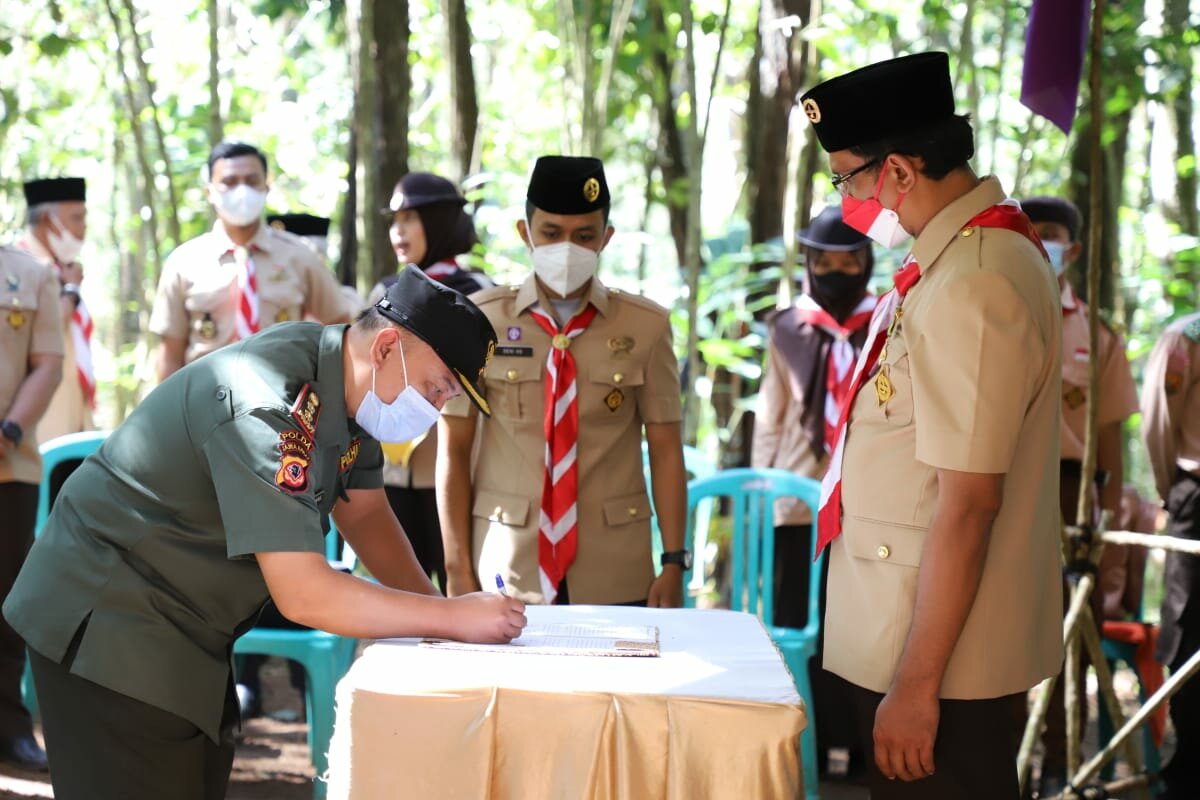 TINTAJABAR.COM, GARUT – Ketua Kwarcab Garut yang juga selaku Wakil Bupati Garut, Kak Helmi Budiman menghadiri acara Pelantikan dan Pengukuhan Pengurus Majelis Pembimbing Ranting (Mabiran), Kwartir Ranting (Kwarran), Lembaga Pemeriksa Keuangan (LPK) dan Dewan Kerja Ranting (DKR) Kwarran Gerakan Pramuka Bungbulang Masa Bakti 2021-2024 yang dilaksanakan di Desa Bojong, Kecamatan Bungbulang, Kabupaten Garut, Rabu (25/9/2021). Pada acara ini juga dilakukan menandatanganan MoU kerjasama antara Perhutani bersama Kwarcab Gerakan Pramuka Kabupaten Garut terkait Buper (Bumi Perkemahan).