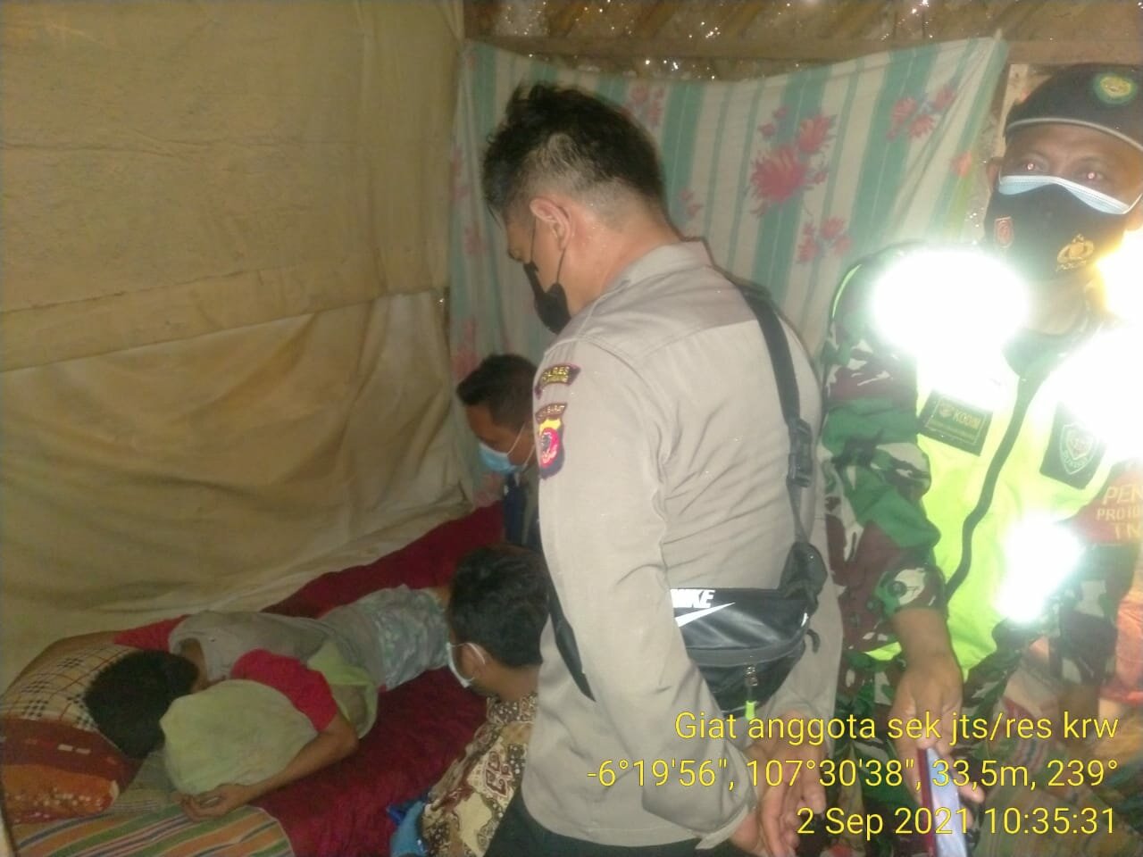 TINTAJABAR.COM, KARAWANG – Bhabinkamtibmas Desa pacing sambang Polsek Jatisari Polres Karawang pimpinan Kompol Marsono S.Pd melaksanakan pengamanan dan monitoring vaksinasi ODGJ di wilayah desa pacing Kec. Jatisari. Kamis, 02 September 2021