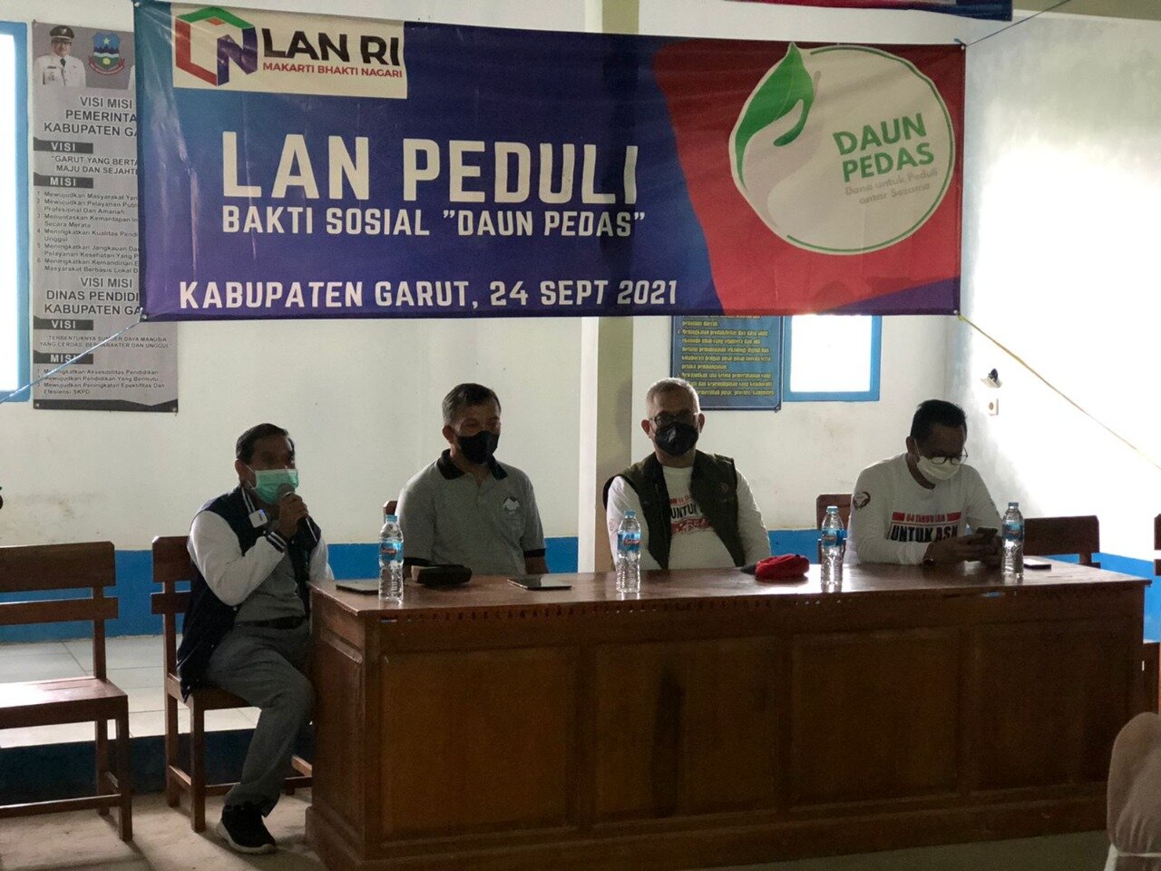 Sementara, Wawan Nurdin selaku Staf Ahli Bupati Bidang pemerintahan Kabupaten Garut, menyampaikan ucapan terima kasih kepada LAN yang telah memilih Desa Cigadog sebagai tempat pelaksanaan baksos “daun pedas”.