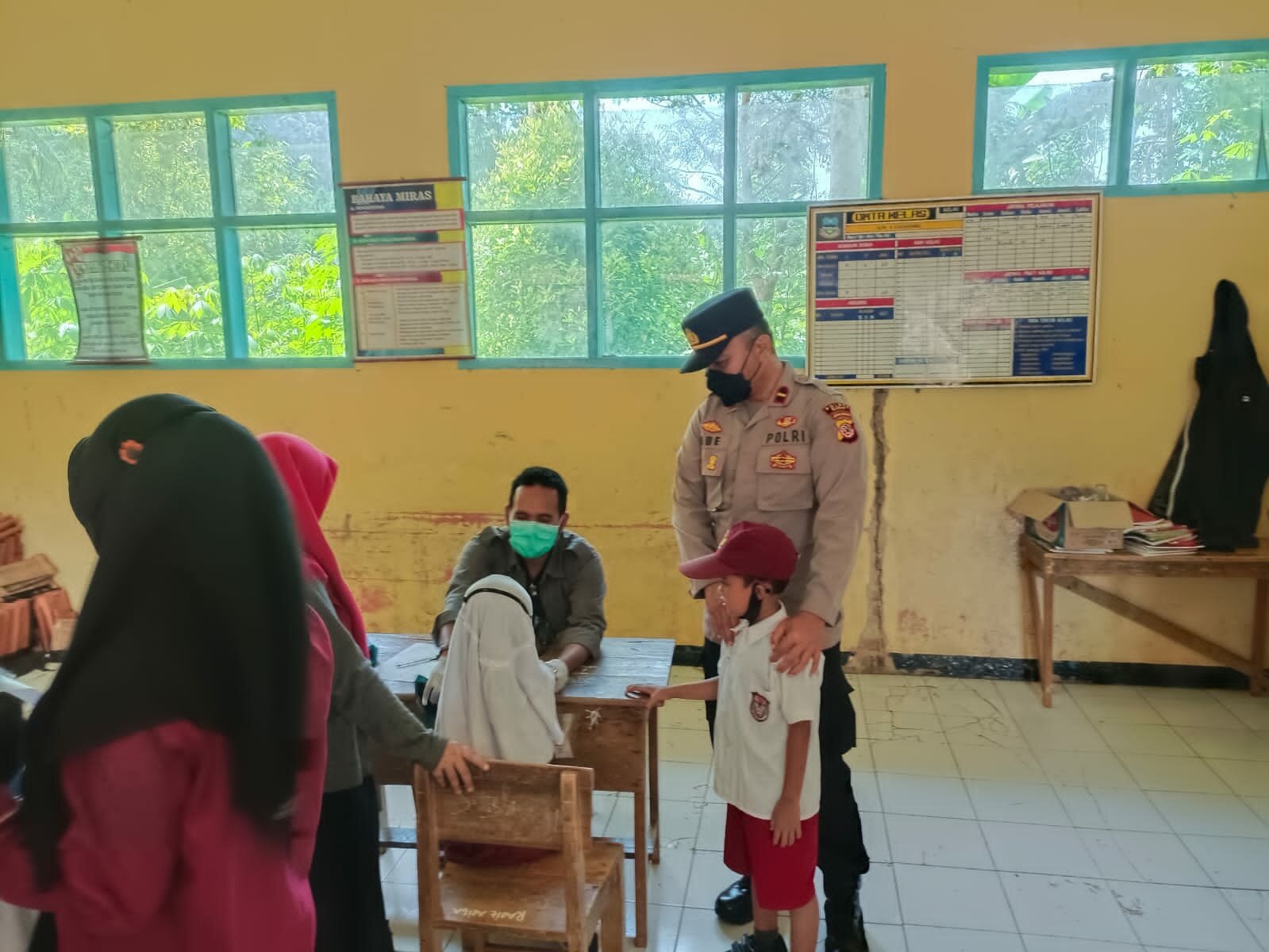Kali ini vaksinasi dilaksanakan di SDN 1, 3 dan 4 Cikondang serta MI Al-Miftah Desa Cikondang Kecamatan Cisompet Kabupaten Garut, Minggu (16/01)