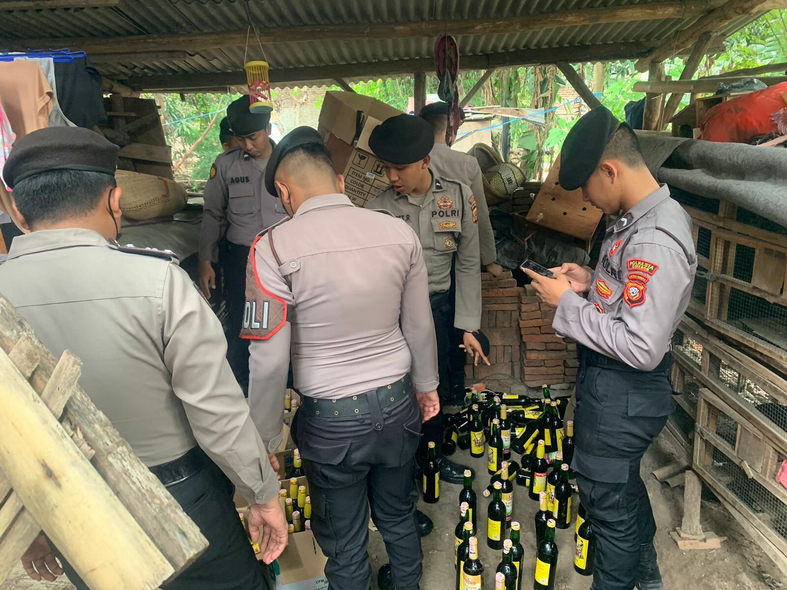 Menurutnya, miras yang diamankan di lokasi kejadian jumlahnya mencapai 191 botol dan langsung diamankan sebagai barang bukti. Terdiri dari 53 botol Anggur Kolesom, 44 botol Anggur Merah, 57 botol Arak Orang Tua, 22 botol Asoka, 11 botol Bir Angker, 2 botol Ice Land, dan 2 botol Guinness Hitam