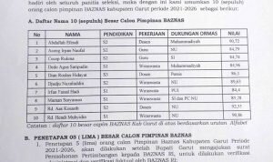 Adapun 10 besar Capim BAZNAS Kabupaten Garut yang telah ditetapkan oleh pansel selengkapnya adalah sebagai berikut: