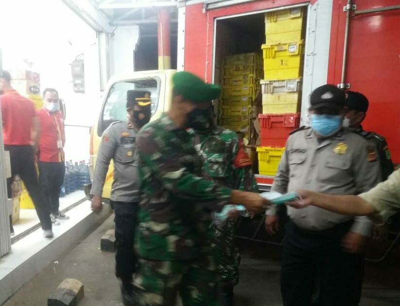 Pemberian sangsi kepada pelanggar Protokol kesehatan dengan Teguran lisan terhadap yang tidak menggunakan masker sebanyak 36 orang sekaligus pembagian Masker dibagikan sebanyak 45 Pcs.