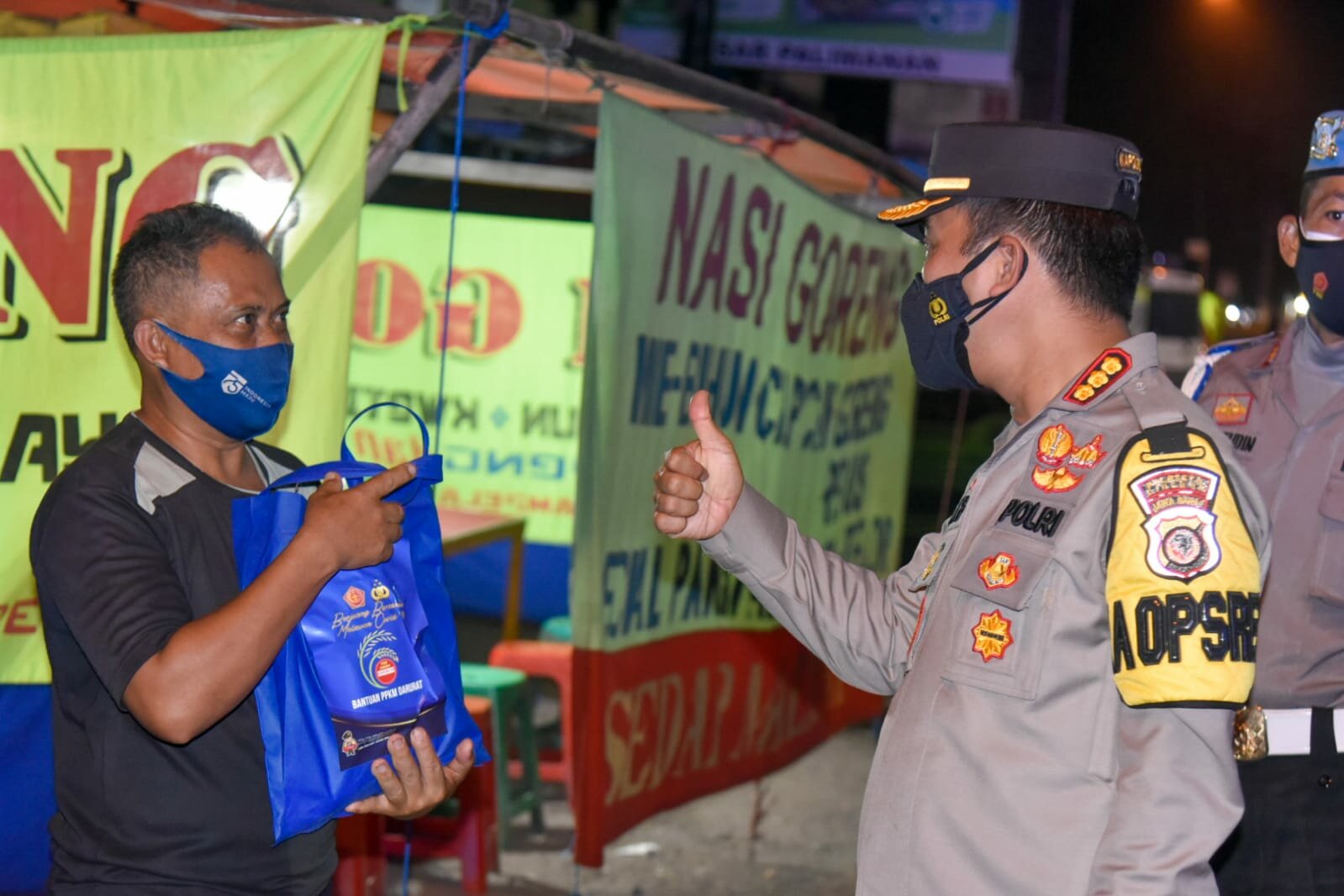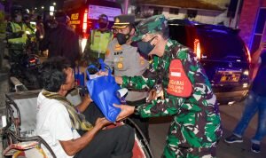 Patroli Skala Besar malam ini lain dari malam-malam sebelumnya, Petugas gabungan itu terdiri dari TNI, Polri, dan Satpol PP Kabupaten Cirebon membawa sejumlah sembako dan dibagikan kepada pedagang kaki lima yang dinilai terkena dampak pemberlakukan PPKM Darurat level 4 masa pandemi Covid-19 di Kabupaten Cirebon.