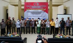 TINTAJABAR.COM, GARUT – Bupati Garut, Rudy Gunawan, menghadiri acara Kegiatan Silaturahmi Kebangsaan dalam rangka Mencegah Penyebaran Intoleransi dan Faham Radikalisme di Kabupaten Garut, yang digagas oleh Badan Nasional Penanggulangan Terorisme (BNPT) bekerja sama dengan Pemerintah Kabupaten (Pemkab) Garut, di Gedung Islamic Center, Jalan Pramuka, Kecamatan Garut Kota, Kabupaten Garut, Jum’at (29/10/2021).