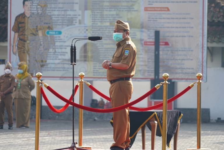“Sekarang posisi vaksinasi kita dosis satu di 84%-85%, (sudah) memenuhi target. Tapi dosis duanya kita baru 42% sehingga kita masih di level2 turun lagi ke level 2, kan untuk Level 1 minimal harus 60% dosis duanya,” kata Bupati Garut, ketika memimpin apel gabungan terbatas di Lapangan Sekretariat Daerah, Jalan Pembangunan, Kecamatan Tarogong Kidul, Kabupaten Garut, Senin (31/1/2022).