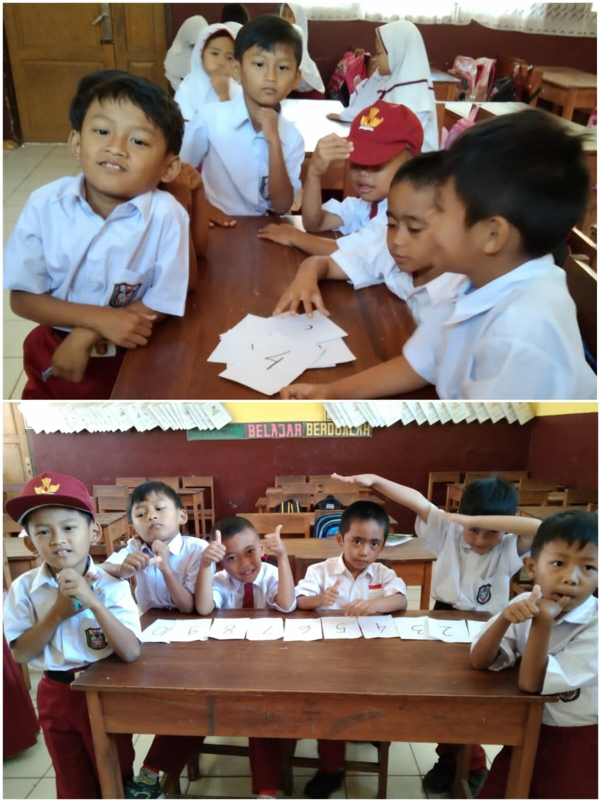 Pada hari Selasa sekira pukul 07.30 Wib, anak anak siswa siswi kelas 1B masuk kelas dan guru mulai memberikan pembelajaran menyusun angka bilangan satu sampai angka sepuluh terdiri dari beberapa kelompok,angka yang di acak oleh guru di urutkan dan semua anak bekerjasama untuk mengurutkan bilangan tersebut dengan benar,waktu pembelajaran s.d pukul 09.30 Wib.Itupun di lakukan hal yang sama oleh siswa siswi kelas 1A di jam yang berbeda,sekira pukul 09.30 s.d 10.30 Wib.