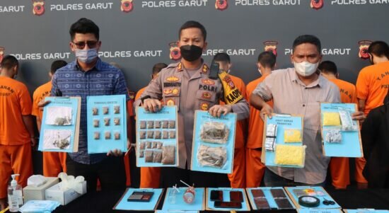 Polres Garut telah mengamankan barang bukti yaitu 37.07 (Tiga Puluh Tujuh Koma Tujuh) Gram Sabu-Sabu, 51.86 (Lima Puluh Satu Koma Delapan Puluh Enam) Gram Tembakau Sintetis, 128.92 (Seratus Dua Puluh Delapan Koma Sembilan Puluh Dua) Gram Ganja, 1.271 (Seribu Dua Ratus Tujuh Puluh Satu) butir jenis Psikotropika berbagai jenis, 6.275 (Enam Ribu Dua Ratus Tujuh Puluh Lima) butir obat keras terlarang berbagai jenis.