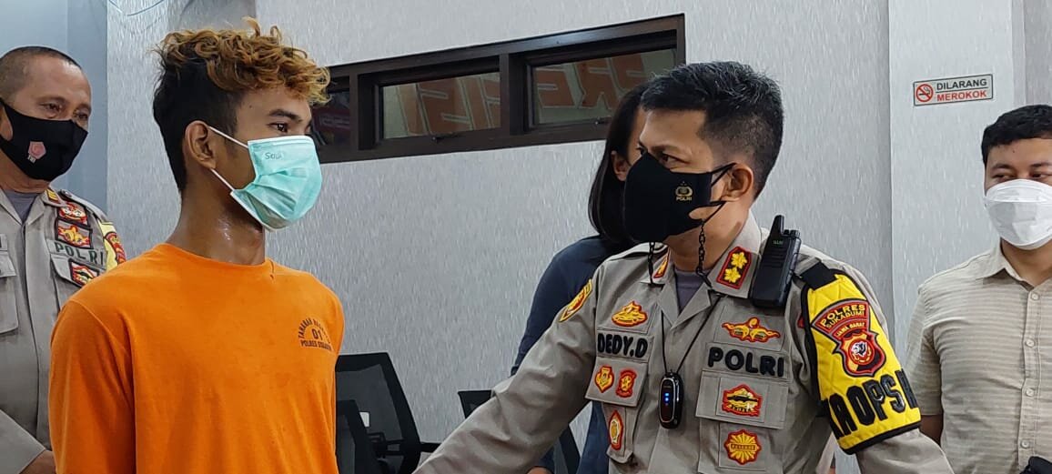 “Pelaku berinisial MRF (19) Islam alamat Kp. Cipuntir Desa Cikelat Kec. Cisolok Kab. Sukabumi. Dan barang bukti yang berhsil di amankan diantaranya 1 (satu) buah pisau dapur warna Abu, 1 (satu) unit kendaraan motor merek Honda Beat Type D1B02N2612 A/T Warna Hitam, 1 (satu) buah helm dan Dompet berisi STNK kendaraan yang dicuri dan kartu identitas korban”, ujarnya.