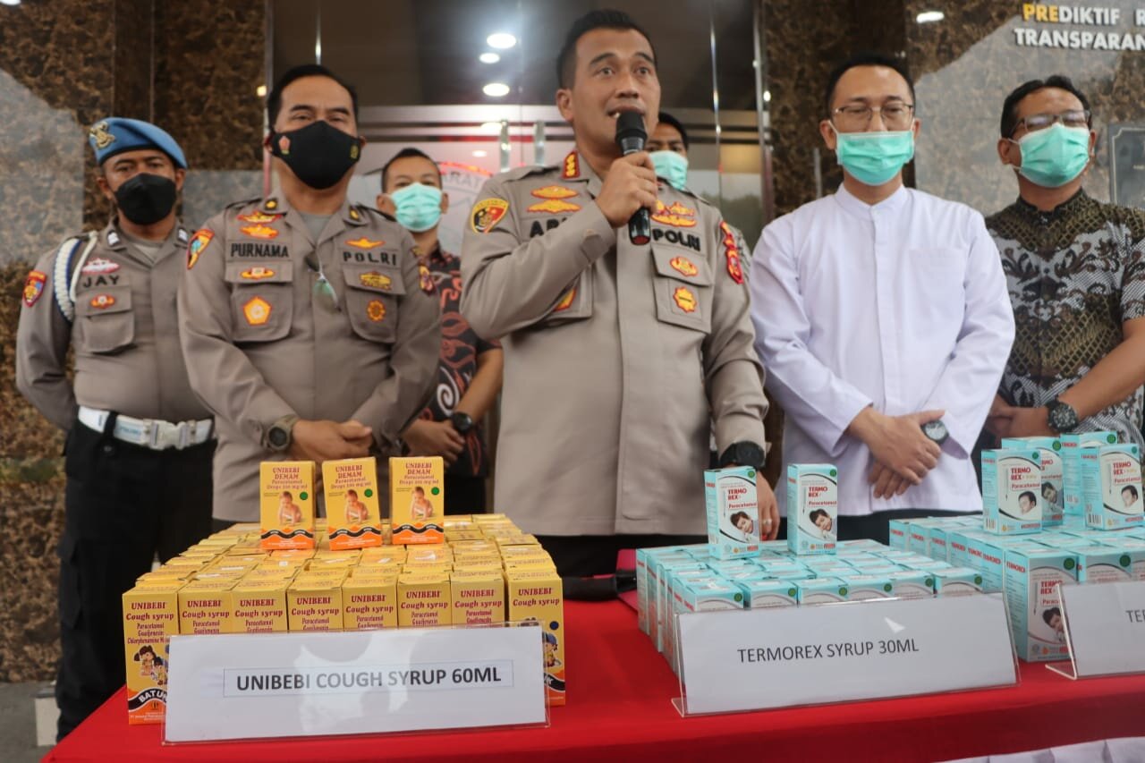 Adapun obat sirup yang diamankan jajarannya dari sejumlah apotek tersebut terdiri dari 74 botol Unibebi Cough Syrup 60 ml, 44 botol Termorex Syrup 60 ml, 43 botol Termorex Syrup 30 ml, dua botol Termorex Baby, dan lainnya.