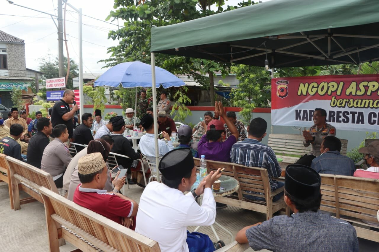 TINTAJABAR.COM, CIREBON – Polresta Cirebon menggelar kegiatan Ngopi Aspirasi bersama berbagai unsur masyarakat Kecamatan Susukan, Kabupaten Cirebon, Selasa (8/11/2022). Kegiatan tersebut dilaksanakan di warung Petra Shop milik H. Ikhwani Jl. Ki Bagus Rangin Desa Kejiwan Kec. Susukan Kab. Cirebon.