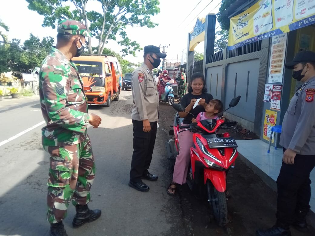 Selain itu, masih kata Kapolsek, ” kami juga melakukan sosialisasi tentang PPKM sesuai dengan Inmendagri Nomor 63 Tahun 2021, dan juga sebagai wujud kepedulian, Kami bagikan masker kepada para pengendara R2 maupun R4, serta menyarankan agar selalu mematuhi protokol kesehatan sebagai upaya memutus mata rantai penyebaran Covid-19 “, ujarnya.