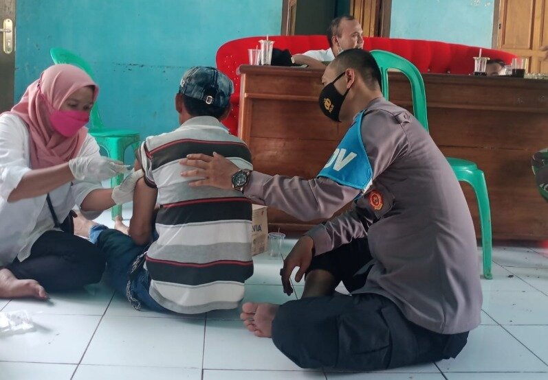 TINTAJABAR.COM, GARUT – Polsek Cibalong Polres Garut bersama Forkofincam Cibalong, terus menggelar giat Gerai Vaksin Presisi TNI-POLRI Untuk Negeri dosis 1 dan 2 dengan sistem Door to Door di Desa Mekarmukti, Kecamatan Cibalong Kabupaten Garut Jawa Barat,