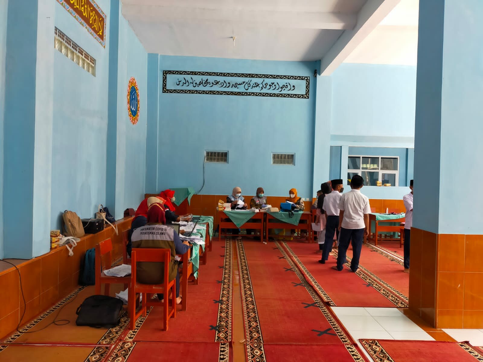 Hadir dalam kegiatan gerai vaksin TNI Polri di MTs Nurul Iman Cilawu adalah Camat Cilawu Dra. Mekarwati,M.Si, Kapolsek Cilawu Kompol Tommy Widodo Arief, S.H, M.Si, Danramil Cilawu Kapten Arm. Hariyanto, Kasi Humas Polsek Cilawu Bripka Joy A. Akbar, Bhabinkamtibmas Desa Pasanggrahan Brigadir Abdul Rohim , Bhabinsa Desa Pasanggrahan Serma Nandang H dan Tim Tenaga Kesehatan UPT Puskesmas Cilawu sebanyak 10 orang