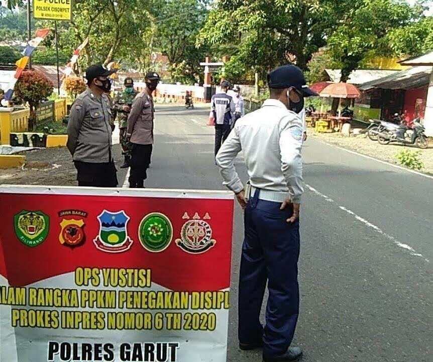 “Operasi Yustisi ini guna untuk menekan angka kasus positif virus Covid-19 di wilayah Kabupaten Garut khususnya di Kecamatan Cisompet dengan cara memberilan Himbauan dan Eduksi kepada pengendara yang melintas di jalan raya Garut – Pameungpeuk trpatnya di depan Polsek Cisompet” ujar Asep.
