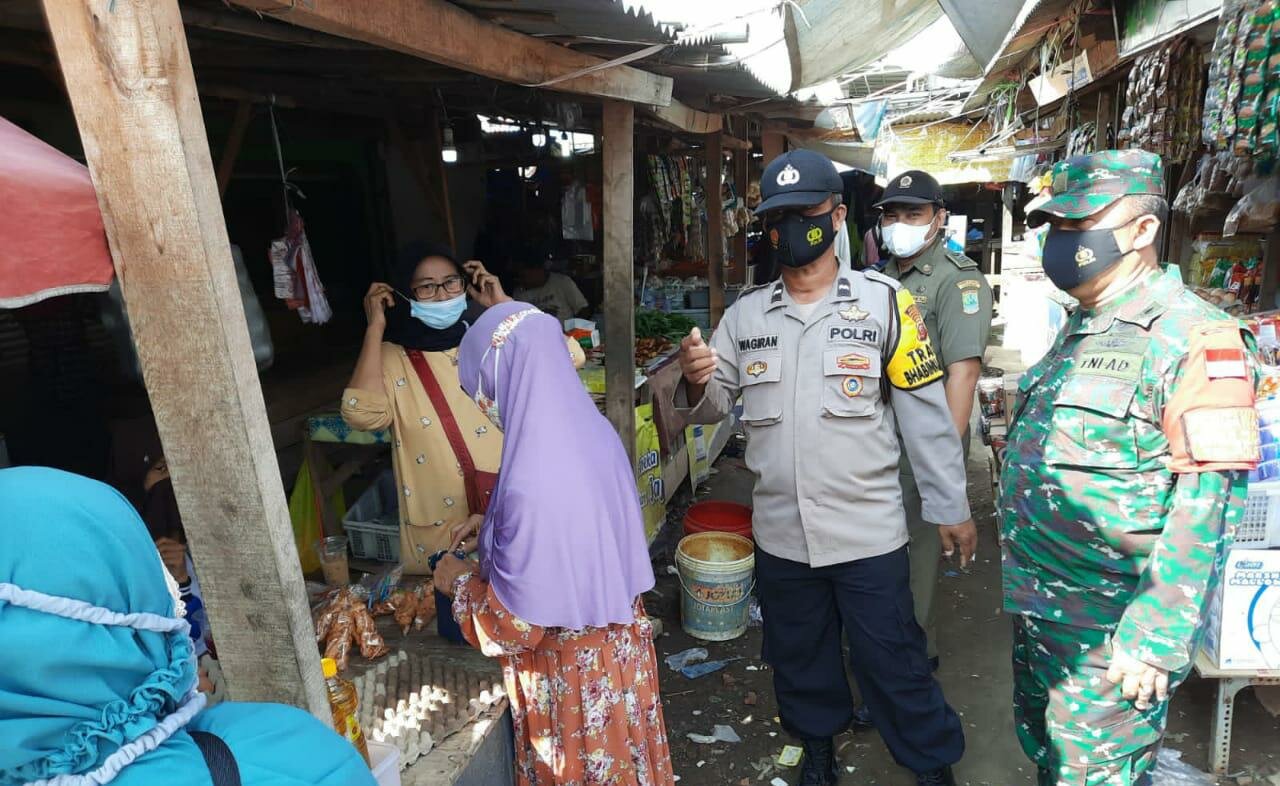 “Pemberian sangsi kepada pelanggar Protokol kesehatan Dan teguran lisan terhadap yang tidak menggunakan masker sebanyak 19 orang, kita siapkan Masker sebanyak 70 Pcs untuk dibagikan dan menekan warga untuk patuhi protokol kesehatan, kata kapolsek.
