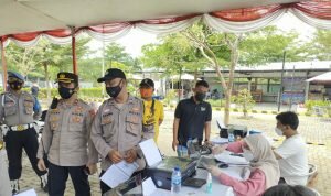 TINTAJABAR.COM, KARAWANG – Polsek Klari Polres Karawang Polda Jabar melaksanakan Pengamanan dan Monitoring Pelaksanaan Vaksinasi Kartika Residance Dosis ke 2. Sabtu 25 September 2021.