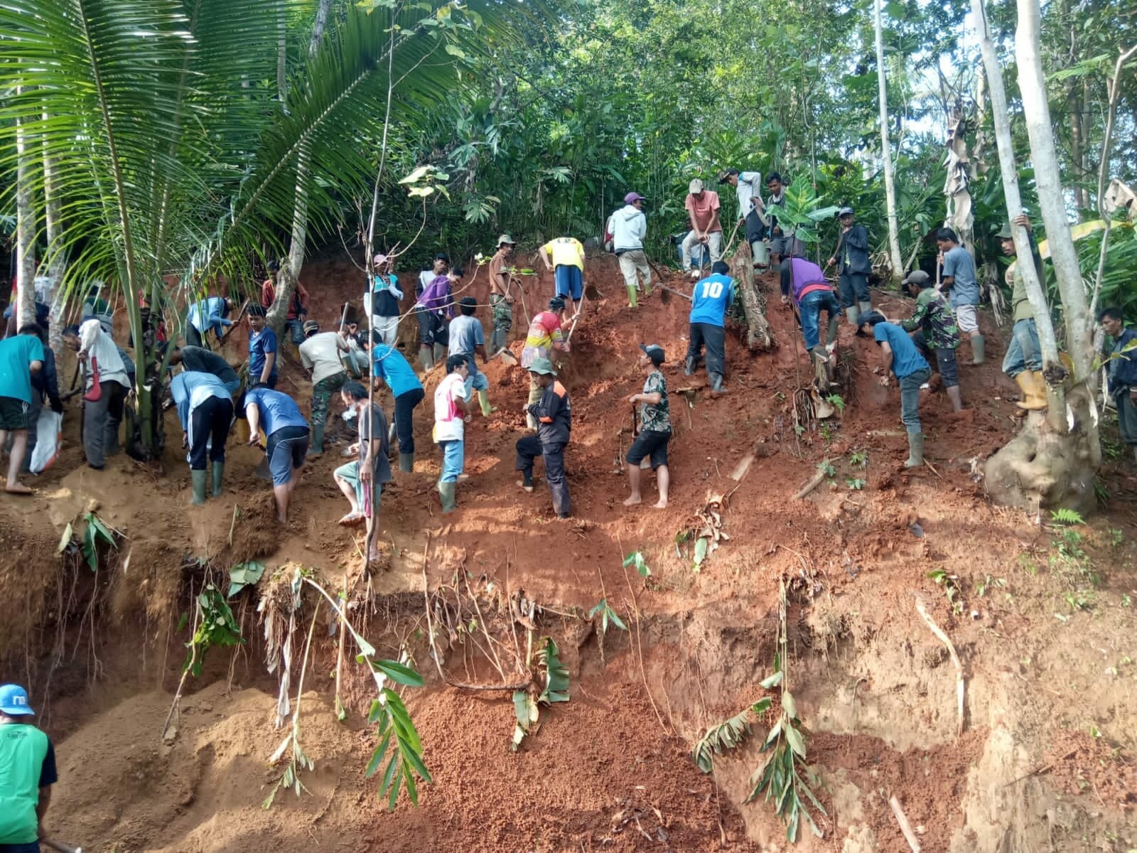 Perbaikan jalan ini dilakukan secara bergotong royong menggunakan alat seadanya misal cangkul, gerobak atau yang lainya yang dimiliki masing- masing warga.