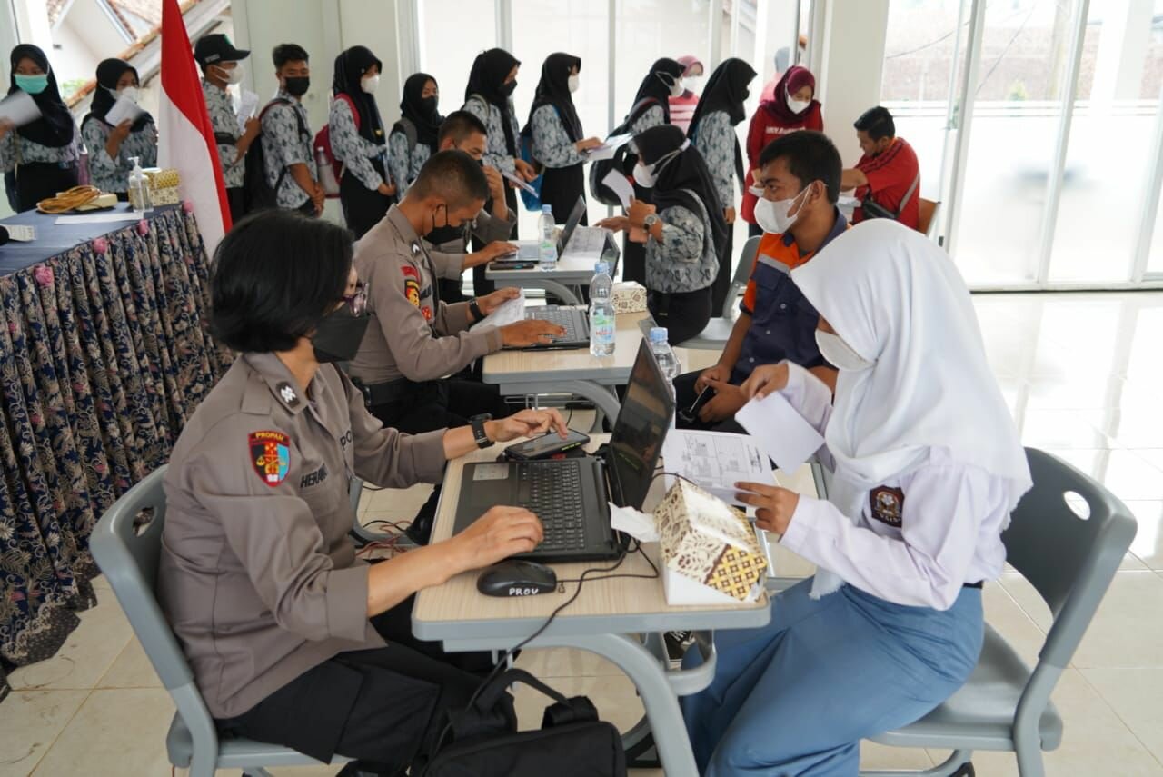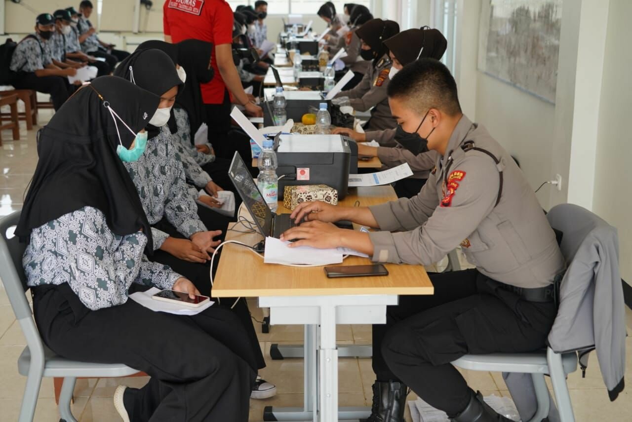 TINTAJABAR.COM, KOTA TASIKMALAYA – Ratusan Siswa-siswi SMK Negeri Rajapolah, Kabupaten Tasikmalaya ikuti Gerai Vaksin Presisi Polres Tasikmalaya Kota.
