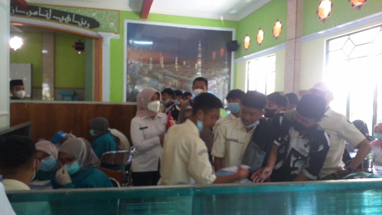 Penyuntikan vaksin Covid – 19 dilaksanakan kepada para siswa/i dan Warga masyarakat dengan Target Dosis sebanyak 450 orang.