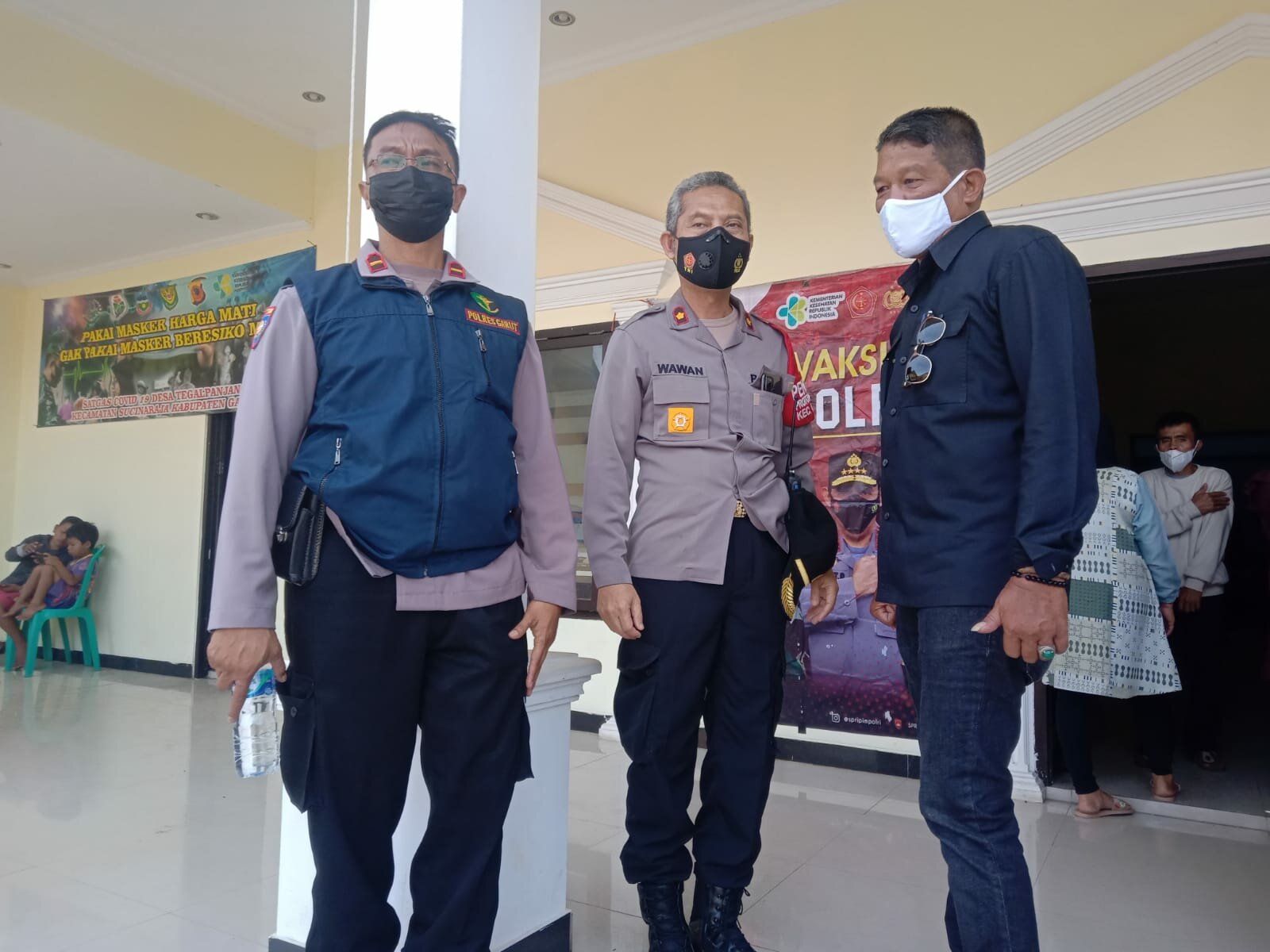TINTAJABAR.COM, GARUT – Kapolsek Wanaraja Polres Garut Polda Jabar Kompol Wawan Setiawan bersama Camat dan Babinsa melaksanaan Gebyar Vaksinasi Presisi TNI-POLRI di Desa Tegalpanjang, Kecamatan Sucinaraja, Kabupaten Garut, Jawa Kamis (04/11/2021).