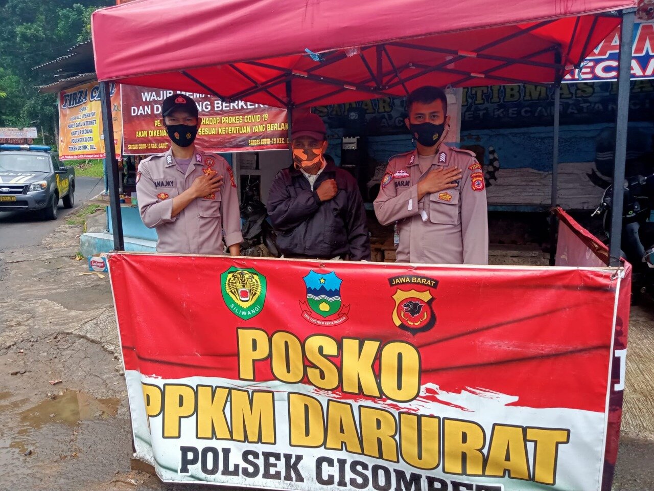 TINTAJABAR.COM GARUT – Kapolsek Bersama Personel Polsek Cisompet melaksanakan Sosialisasi Pemberlakuan Pembatasan Kegiatan Masyarakat (PPKM) Level 2 serta penegakan disiplin prokes, bertempat di Pos Pantau Kawasan Patuh Prokes Pasar Rakyat tepatnya di Kp. Cisindang Kec. Cisompet Kab. Garut, Sabtu (20/11).