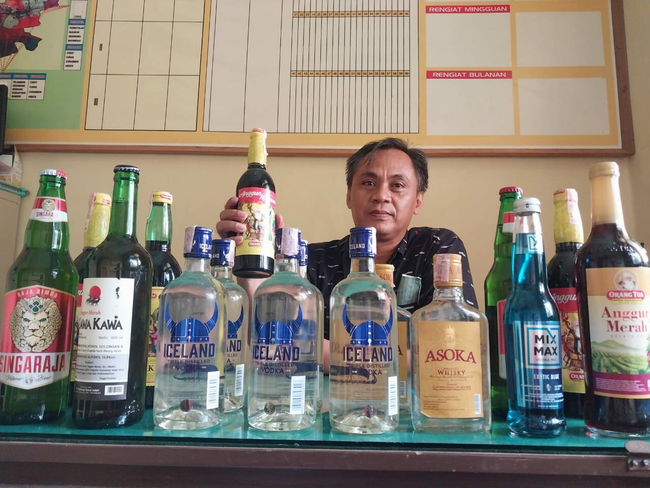 Sebanyak 17 botol miras dari berbagai merk berhasil diamankan. Diantaranya, satu botol anggur merah, tiga botol anggur kolesom, satu botol arak, dua botol Singaraja, satu botol kawa-kawa, 3 botol asoka, lima botol iceland, dan satu botol mix max.