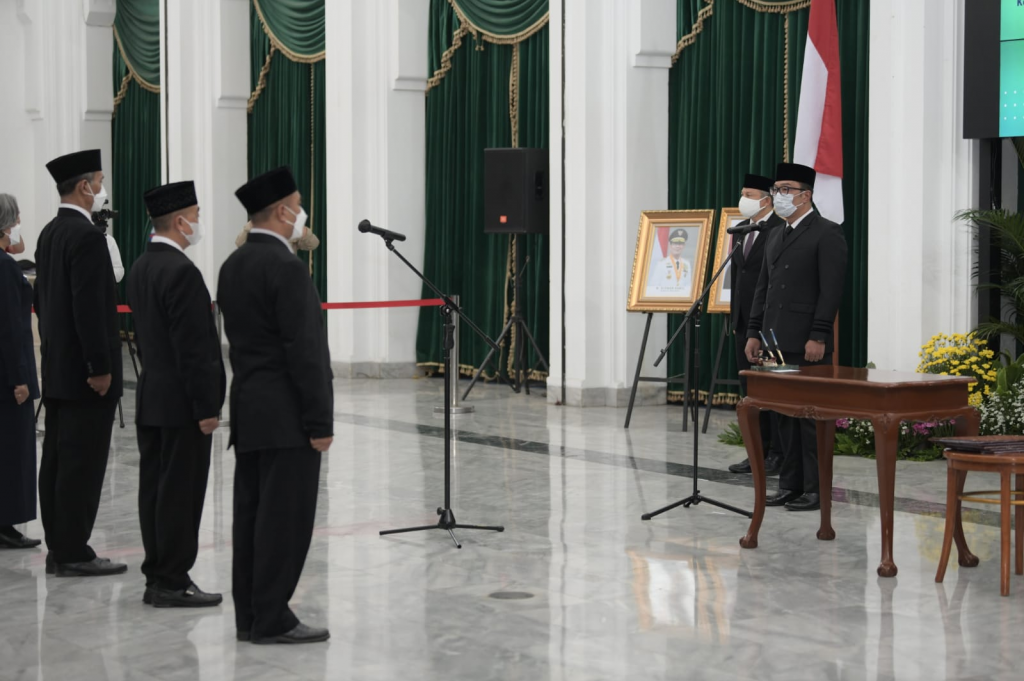 TINTAJABAR.COM, BANDUNG – Gubernur Jawa Barat melantik 480 pegawai negeri sipil (PNS) sebagai pengawas dan kepala sekolah di Gedung Sate, Kota Bandung, Senin (6/12/2021).