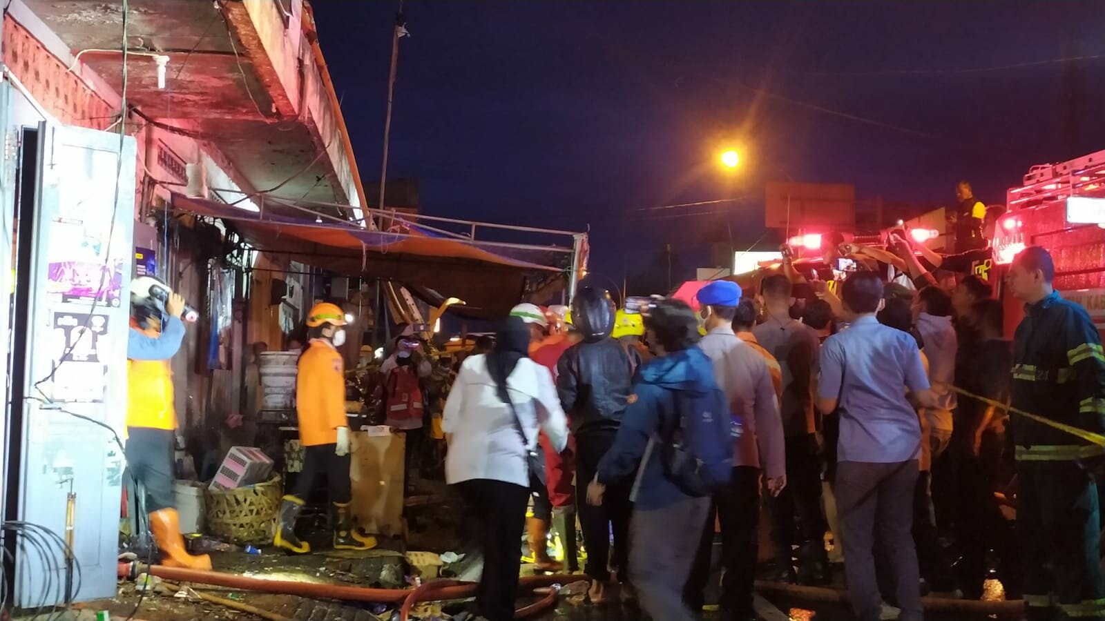 Terlihat salah satu Toko terbakar sekitar Pukul 17.00 WIB, ada Kios tembakau Bako Rakyat, Kios Donat dan Makanan.