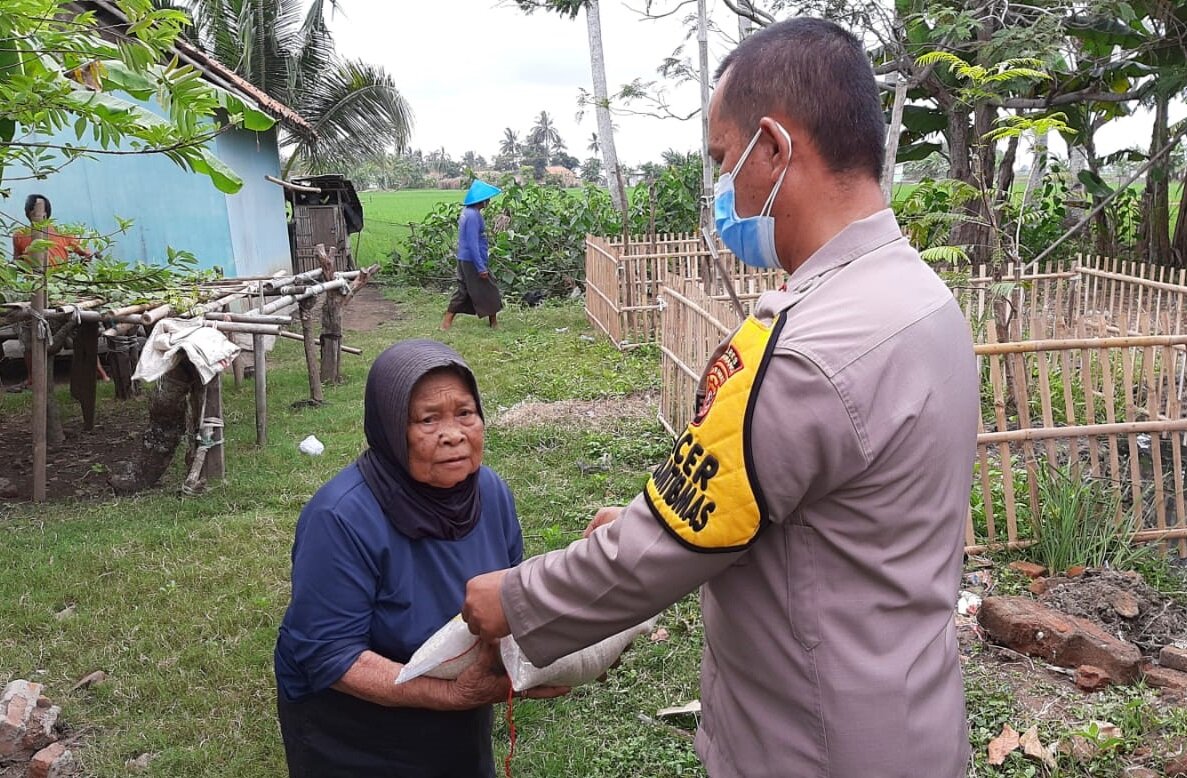 Bripka Asep Eka menyalurkan bantuan secara door to door kepada masyarakat, ditengah pandemi saat ini kegiatan dilakukan dengan mengurangi kerumunan sehingga petugas langsung terjun kealamat warga yang mendapatkan bantuan tersebut.