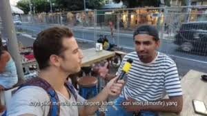 Sementara pemuda berkaos garis-garis memberikan jawaban yang cukup masuk akal ketika ditanya apakah orang Indonesia suka warga Israel berkunjung ke Tanah Air.