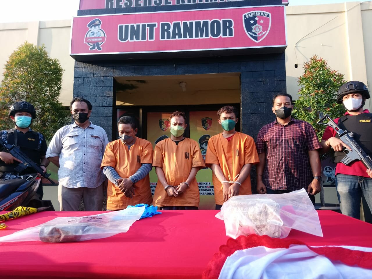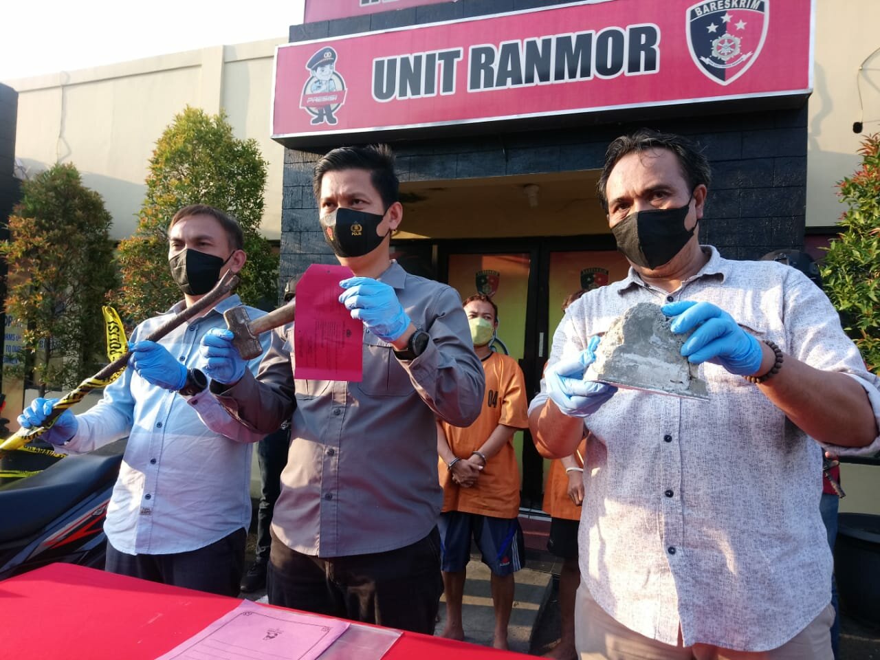 Ketiga pelaku kemudian diglandang ke Mako Polsek Gegesik untuk dilakukan pemeriksaan lebih lanjut. Hasil pengakuannya, aksi pelaku sudah direncanakan dengan membawa palu dan juga linggis. Mereka datang ke lokasi kejadian. Kemudian menggunakan palu dan linggis untuk membobol belakang minimarket. Mereka merusak bagian loster, lalu masuk ke dalam. Kemudian mengambil sejumlah barang.