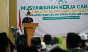 TINTAJABAR.COM, GARUT – Sekretaris Daerah (Sekda) Kabupaten Garut, Nurdin Yana membuka Acara Musyawarah Kerja Pengurus Cabang (PC) Nahdatul Ulama (NU) Kabupaten Garut yang dilaksanakan di Gedung Islamic Centre, Kecamatan Garut Kota, Kabupaten Garut, Kamis (7/10/2021).
