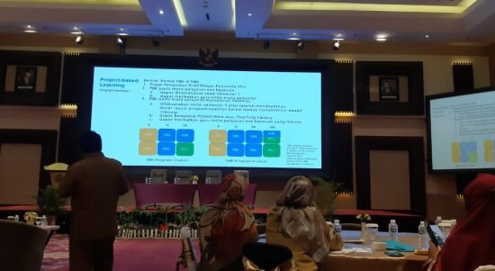 Selama workshop, Bapak Dr. Yogi Anggraena, M.Si. menyampaikan, sebanyak 6.863 SMK telah mendaftar untuk Kurikulum Merdeka. Ada 3 pilihan untuk sekolah dalam mendaftar implementasi Kurikulum Merdeka, yaitu Merdeka Belajar, Merdeka Berubah, dan Merdeka Berbagi. Perbedaan antara implementasi Kurikulum Merdeka Belajar dan Merdeka Berbagi adalah; Merdeka Belajar, kurikulum yang dipergunakan adalah Kurikulum 2013, tetapi mengimplementasikan ruh Kurikulum Merdeka. Misalnya, pembelajaran yang berpusat pada siswa, mengimplementasikan pembelajaran berbasis project, mengimplementasikan asesmen awal pembelajaran (diagnostik), formatif, dan sumatif. Asesmen formatif (assessment for learning) juga sangat penting perannya dalam pembelajaran sebagai upaya peningkatan dan perbaikan capaian pembelajaran peserta didik. Beliau menjelaskan bahwa Kemendikbudristek RI memberikan dukungan strategi kepada seluruh sekolah di Indonesia yang mengimplementasikan Kurikulum Merdeka melalui: 1. Seri webinar; 2. Pusat layanan bantuan; 3. Platform Merdeka Mengajar; 4. Komunitas belajar; 5. Narasumber berbagi praktik baik; 6. Kerja sama dengan mitra pembangunan.