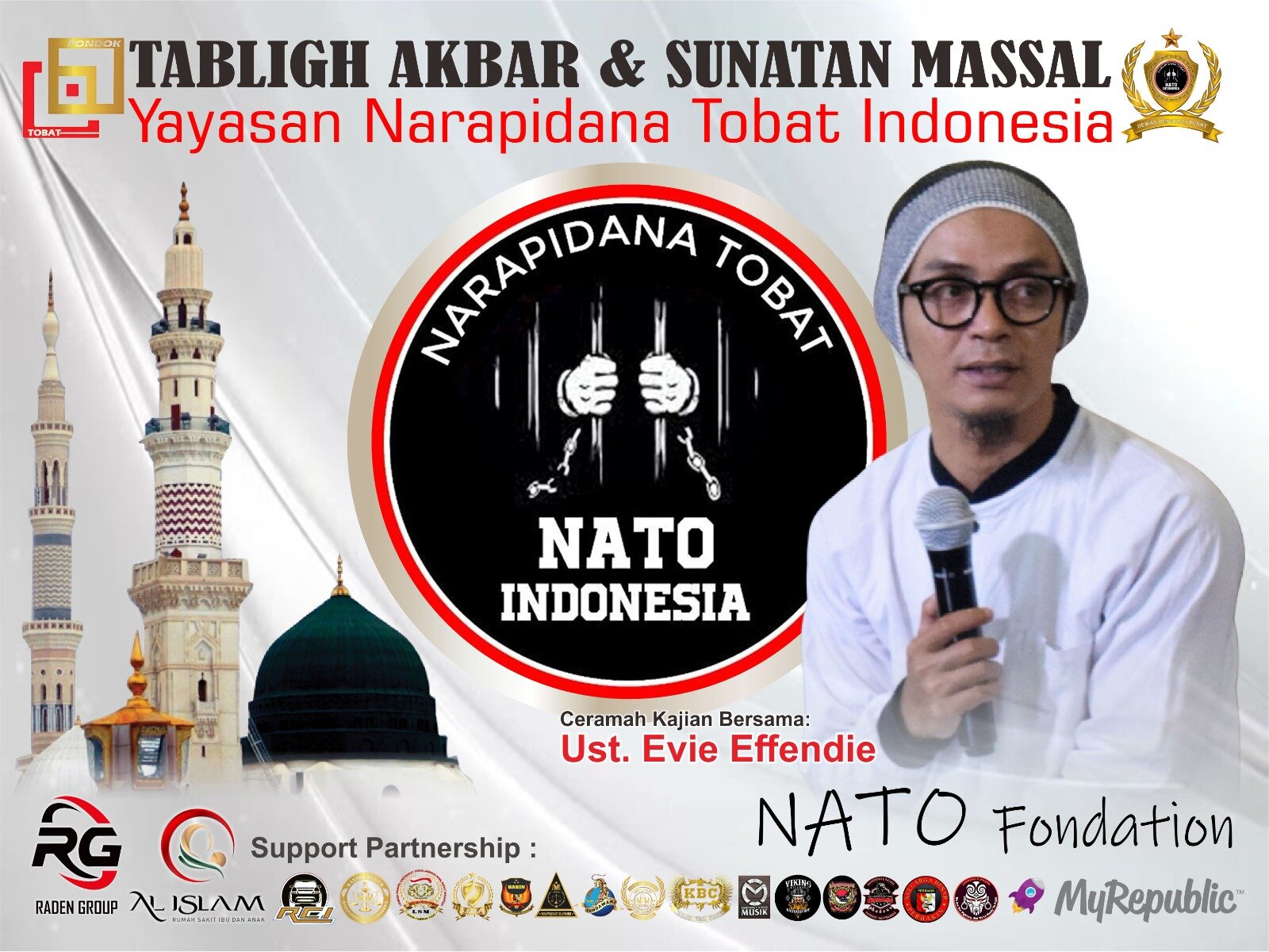 Acara Tabligh Akbar Dan Sunatan Massal yang diprakarsai oleh NATO Pondasion bersama dengan Yayasan Narapidana Tobat Indonesia tersebut disponsori oleh para Donatur-dobatur dari PT. Raden Sampurna Jaya dan NATO Pondation.